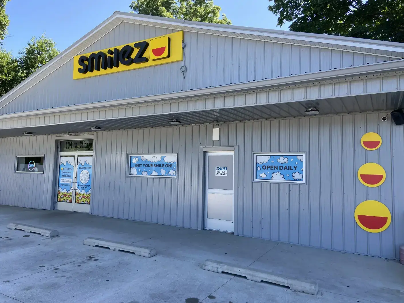 Smilez Quincy is conveniently located at 104 W Chicago St, Quincy, Michigan. Our store is open every day from 9 am to 9 pm.